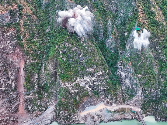 孟底沟水电站左岸38号危岩体爆破完成 |