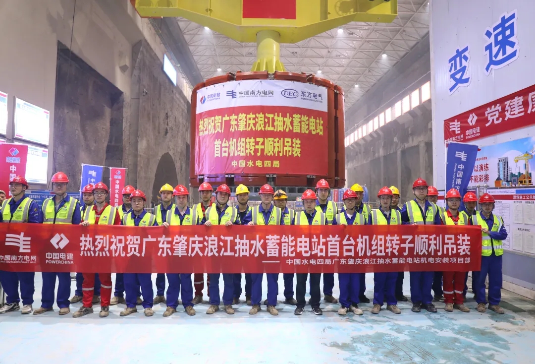 广东肇庆浪江抽水蓄能电站首台(1号)机组转子吊装就位 |