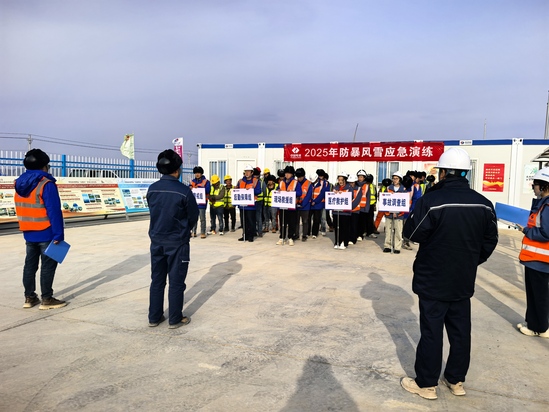 为筑牢冬季施工安全防线,10月26日,国家电投塔城100万千瓦风储项目二标段80万千瓦PC总承包项目组织开展防暴风雪应急演练。 此次演练聚焦当地冬季高频出现的强降雪、大风寒潮等极端天气,通过模拟真实险情,全面“检阅”项目应急指挥体系的响应效率、各团队协同处置的默契度,以及各项保障措施的落地实效,为冬季施工筑牢“安全屏障”。 演练前,项目部秉持“防大汛、抢大险、救大灾”的应急理念,提前谋篇布局。成立了以项目经理为核心的应急演练指挥部,细化组建了现场救援组、医疗救护组、安全警戒组、后勤保障组、事故调查组等专项小组,每个小组职责清晰、分工明确;同时反复打磨全流程演练方案,敲定每一个操作细节,确保演练从筹备到执行都科学有序、贴合实战。 当日16时整,随着总指挥一声“演练开始”,险情模拟正式启动。场景设定在冬季日常作业中:大型起重设备防滑措施加固人员小沈完成故障处理后,与驾驶员一同驾车返回项目部。途中,突如其来的“风吹雪”极端天气瞬间笼罩道路,能见度骤降,车辆难以通行。危急时刻,两人迅速判断形势,第一时间进入附近风机塔筒内固守待援,并立即拨通总指挥电话求助。接到指令后,现场救援组火速集结,携带救援物资奔赴现场。这时候出现了预设的“突发状况”——被困的人员因焦急心切,不听劝阻私自离开相对安全的塔筒,试图冒险自救,最终导致“冻伤”。针对这一“意外”情况,救援组随即调整方案,展开大面积拉网式搜查,最终完成“救援任务”。 演练结束后,项目部召开复盘总结会,对照演练流程逐项梳理:从险情响应的速度、处置措施的合理性,到各小组配合的衔接点,再到过程中暴露出的不足,都进行了深入剖析与讨论。 下一步,项目部将以此次演练为新起点,把演练中积累的经验转化为常态化安全管理举措,严格落实冬季施工 “防冻、防滑、防风、防坍塌”的“四防”要求,以扎实的安全保障,推动项目建设在寒冬中安全、有序推进。