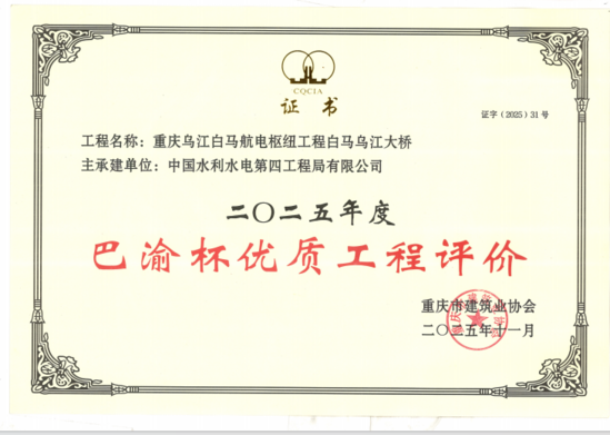 白马乌江大桥荣获重庆市“巴渝杯”优质工程评价 |