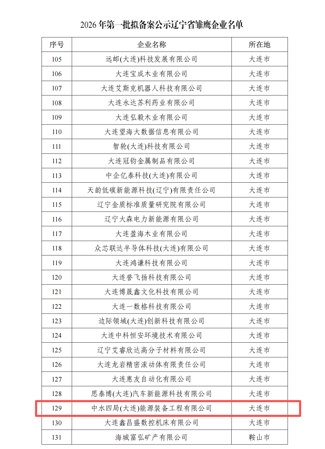 近日,辽宁省科学技术厅发布《2026年第一批辽宁省雏鹰瞪羚独角兽企业公示》,大连公司顺利通过辽宁省“雏鹰企业”认定。 “雏鹰企业”是辽宁省为培育高成长性、强创新力的优质中小企业设立的重要资质,认定标准严格,要求企业在细分领域具备核心技术突破、完善知识产权体系与显著发展潜力。此次获评,既是对大连公司在新能源装备制造领域深耕成果的权威认可,也充分体现了公司践行“科技兴企”战略、坚持自主创新的坚定决心。 作为专注于能源装备领域的核心企业,大连公司自成立以来便扎根大连太平湾风电产业园,聚焦海上风电基础管桩、塔筒、摩擦筒等高端装备的研发与制造。大连公司总占地面积8.8万平方米,自2024年4月投产以来,已累计生产风电装备超万吨,服务于大连市庄河V海上风电项目、河北建投祥云岛海上风电项目、唐山顺桓祥云岛海上风电项目等多个重点风电项目。 雏鹰展翅志高远,厚积薄发向新行。未来,大连公司将以“雏鹰企业”为新起点,深耕细作、精益求精,持续强化科技创新动能,稳步提升企业核心竞争力,奋力从“雏鹰”成长为行业“雄鹰”,为国家“双碳”目标落地、辽宁全面振兴贡献四局担当与坚实力量。 |