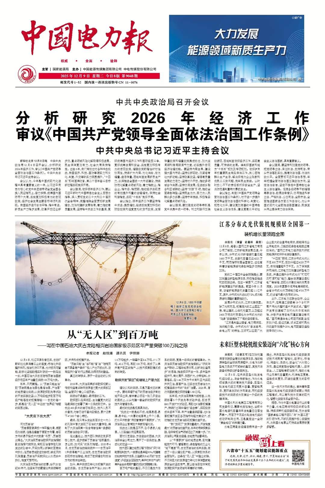 论坛聚焦巨型水轮发电机组发展方向,紧扣数智技术融合、核心技术攻关等行业关键命题,搭建政产学研深度融合的高端交流平台,为未来巨型水轮机组智能化、绿色化和低碳化提供研究方向和攻关思路,共话行业创新发展的新未来。(2025年12月10日 04版)