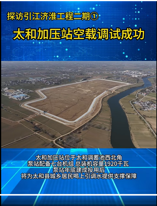 安徽讯(王苏林)11月24日,引江济淮二期工程太和加压站空载调试成功,为后续有水带载调试打下坚实的基础。
